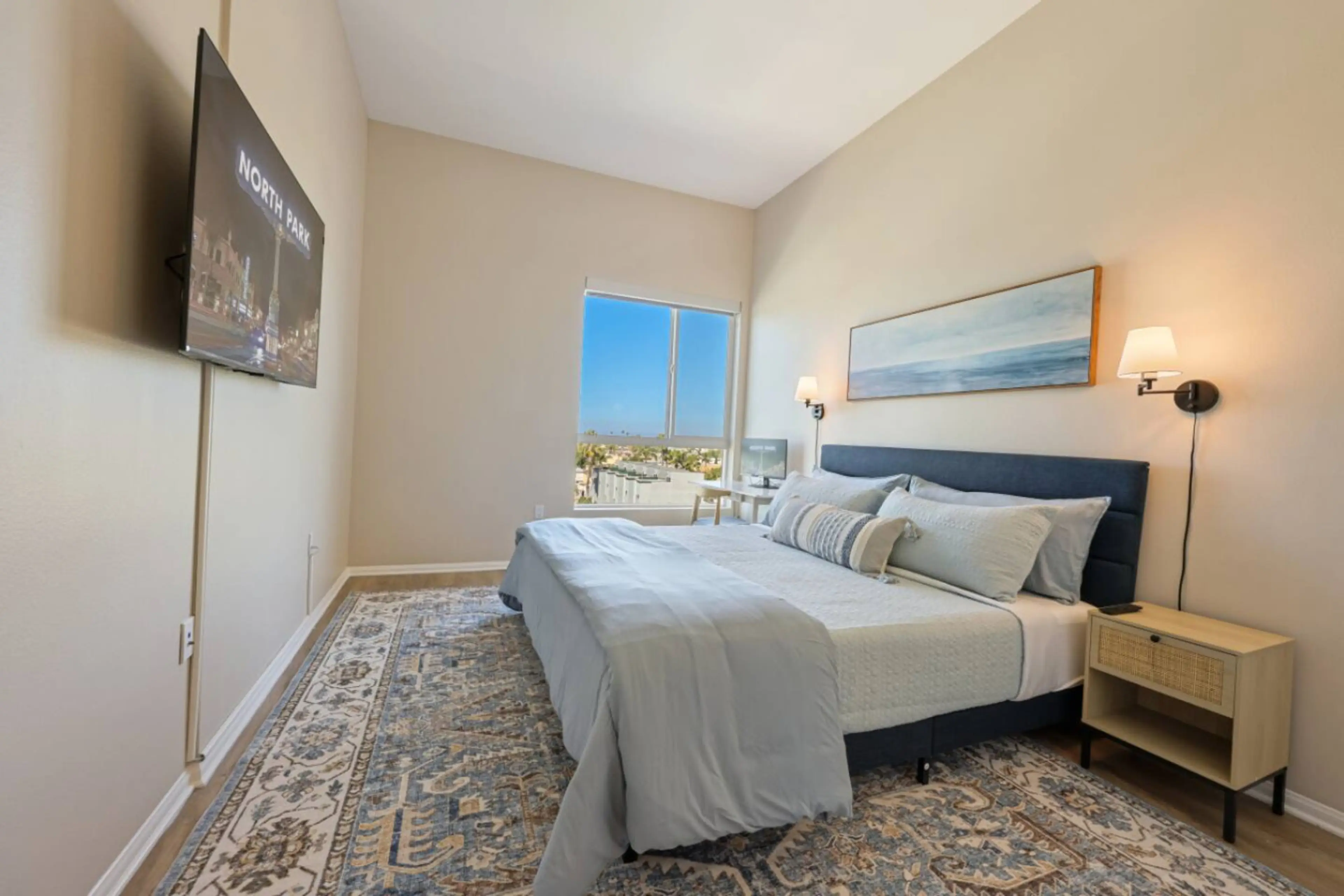 Stay in style at this modern 2BR/2BA apartment in vibrant North Park—only 10 mins to downtown and 15 mins to the airport or beach. A great choice for families, groups, and those traveling for work. ✔ 2 King Bedrooms + Sofa Bed (Sleeps 6) ✔ Open-Concept Living & Private Balcony ✔ Full Kitchen + Smar...